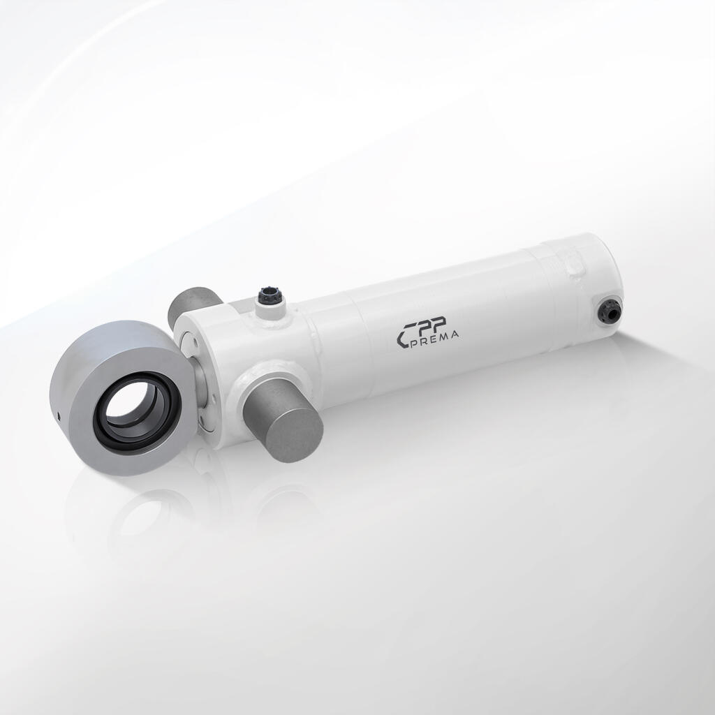 Siłowniki hydrauliczne dwustronnego działania CPP PREMA w rozmiarach D25-D160 tworzą jednolitą rodzinę napędów liniowych, które zamieniają energię ciśnienia cieczy roboczej na siłę mechaniczną w obu kierunkach ruchu tłoka. Linia obejmuje sześć wariantów mocowań: T4 UCJ5 (jarzmo na czopach), F4 UCJ4 (kołnierz okrągły dna), F3 UCJ3 (kołnierz okrągły głowicy), UCD6 2S2 (łapy poprzeczne + dwustronne tłoczysko), UCJ6 S2 (łapy poprzeczne, jednostronne tłoczysko) oraz UCJ2 P5 (ucho dna z łożyskiem przegubowym). Każdy siłownik posiada korpus ze stali E355, precyzyjnie honowany do chropowatości ≤ 0,3 µm. Tłoczysko wykonuje się ze stali C45 pokrytej chromem twardym o grubości 25 µm, co obniża współczynnik tarcia i chroni przed korozją. Standardowy układ uszczelnień zawiera pierścienie PU/NBR, pierścienie prowadzące z kompozytu PTFE-brąz oraz rezerwy smarne zapobiegające zatarciu przy wysokich prędkościach.