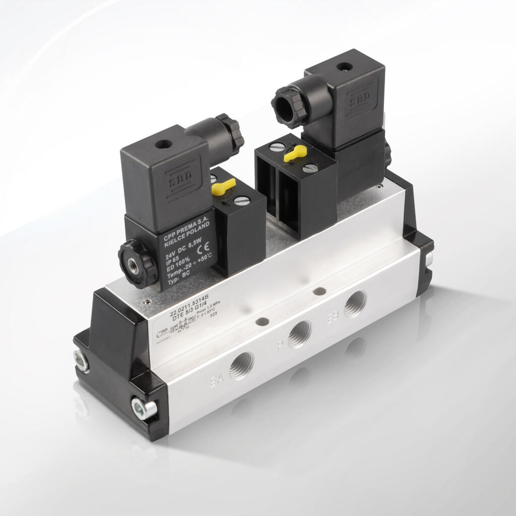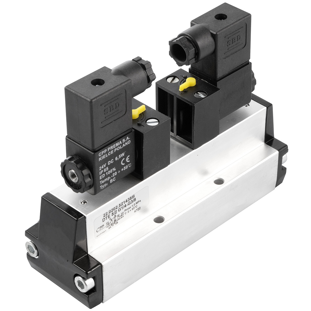 Elektrozawór DTE 5/3 G1/8-1/4 CO centralnie otwarty cewki 24V DC 6,5W (zasilany płytowo)