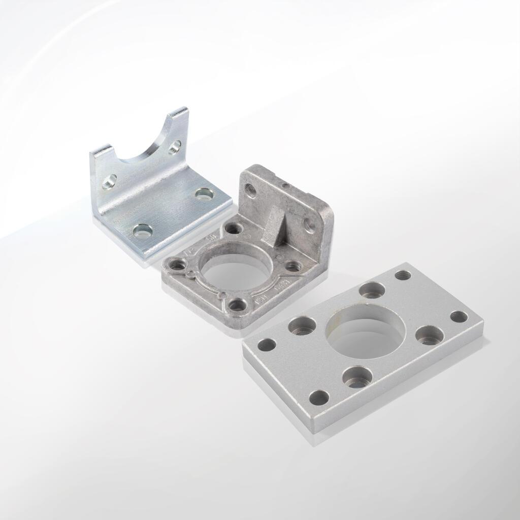 Łapy MS1 to z kolei typowy kątowy uchwyt mocujący, który doskonale nadaje się do najbardziej standardowych zadań w automatyce przemysłowej. Wersje z żeliwa (dla mniejszych średnic) bądź stali węglowej (przy większych rozmiarach) zaprojektowano w taki sposób, by stanowiły rozwiązanie pierwszego wyboru, gdy kluczowe znaczenie ma stabilne utrzymanie siłownika w jednej pozycji. Dzięki rozbudowanej ofercie rozmiarów i zgodności z normami ISO 6431/15552, łapy MS1 sprawdzają się w większości typowych aplikacji, takich jak linie montażowe, systemy pakowania, urządzenia transportowe czy stanowiska spawalnicze.