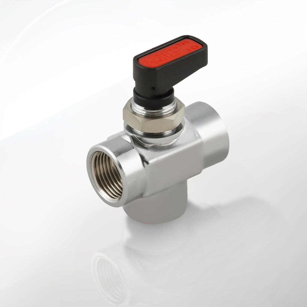 Trójdrożne zawory kulowe typu T (G1/4 GW PN20, G1/8 GW PN20, G3/8 GW PN20) – seria /6710/A, które pozwalają na jednoczesne rozdzielenie przepływu w trzech kierunkach lub swobodne mieszanie mediów. Również tutaj przewidziano montaż grodziowy, co zwiększa elastyczność instalacyjną.