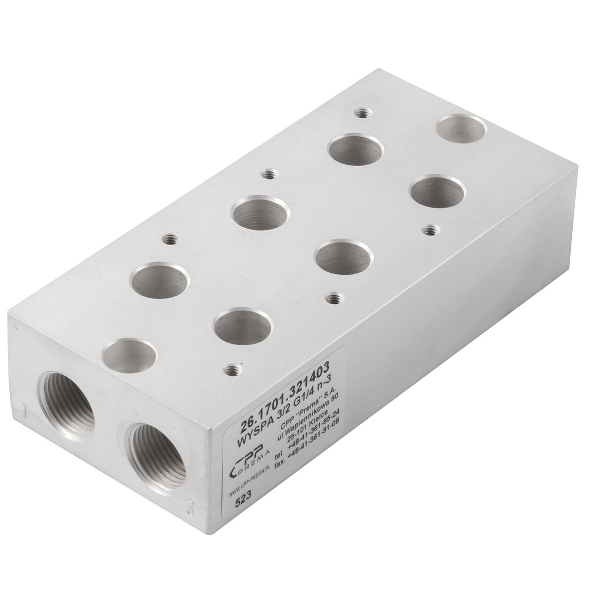 Wyspa zaworowa 3-dr. G1/4 n-10 do zaworów ZEM G1/4 3/2, jednoelementowa
