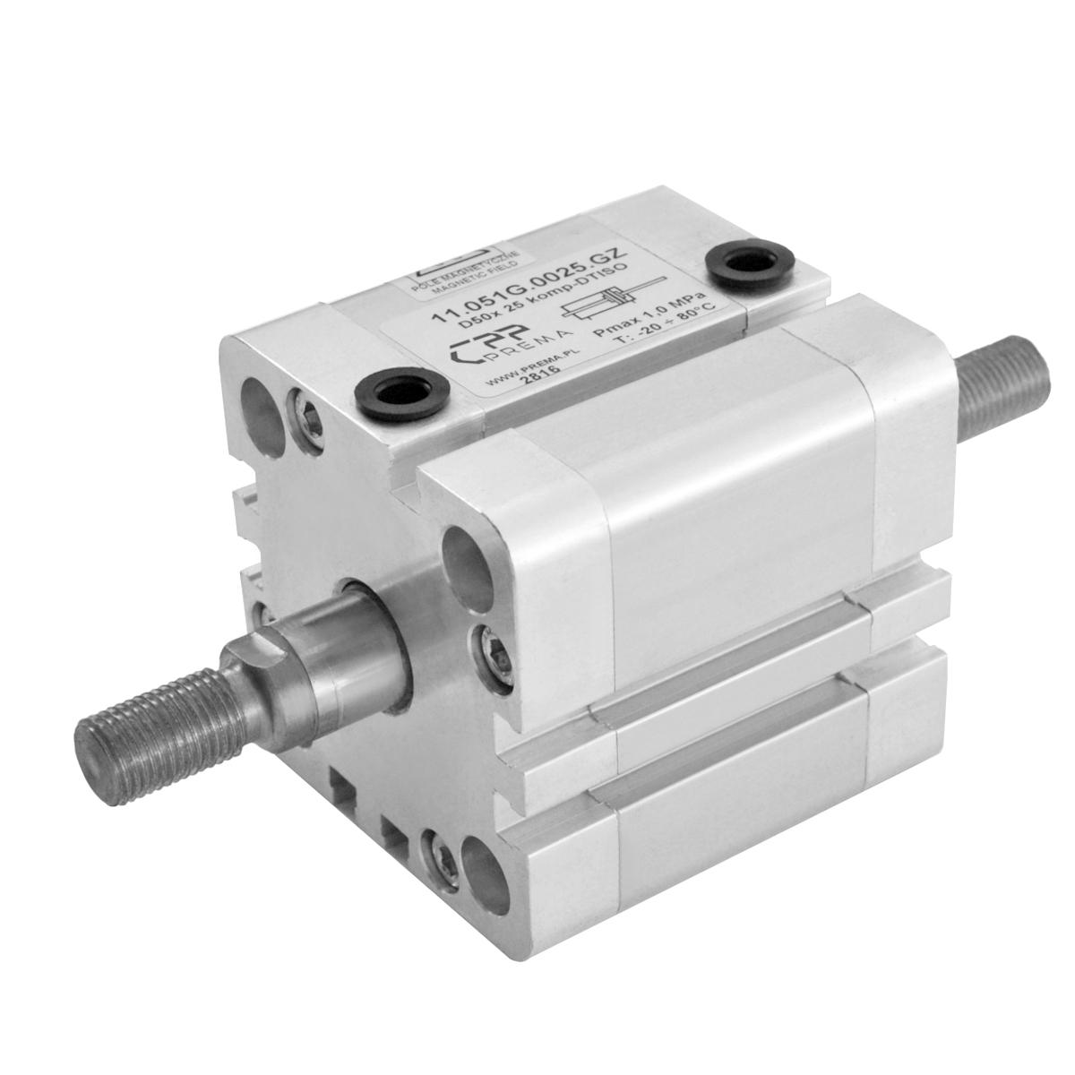 Siłownik kompaktowy D50x50 ISO21287 z dwustronnym tłoczyskiem, gwint zewnętrzny