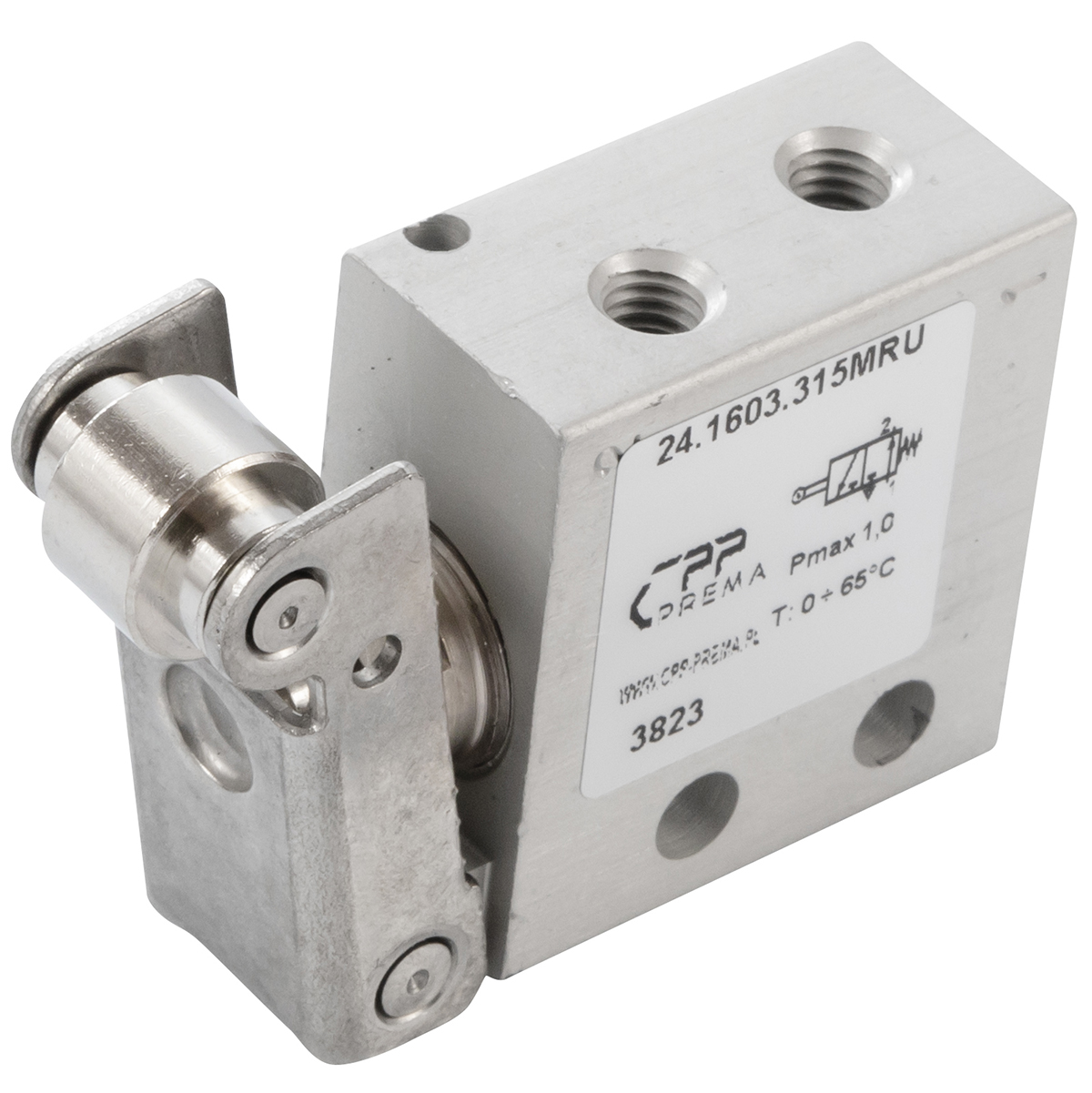 Zawór mechaniczny 3/2 NO normalnie otwarty, dźwignia z rolką zasilanie boczne fi 4 mm