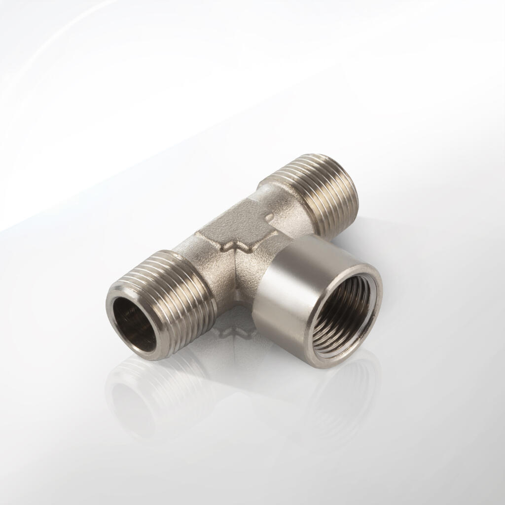 Klasyczne trójniki w układzie litery T. Do korpusu wprowadzono gwint wewnętrzny i dwa boczne odgałęzienia. Mosiądz OT 58 galwanicznie niklowany gwarantuje doskonałą szczelność i trwałość. Tę serię stosuje się tam, gdzie ważna jest prostota rozgałęzienia i szybki montaż.