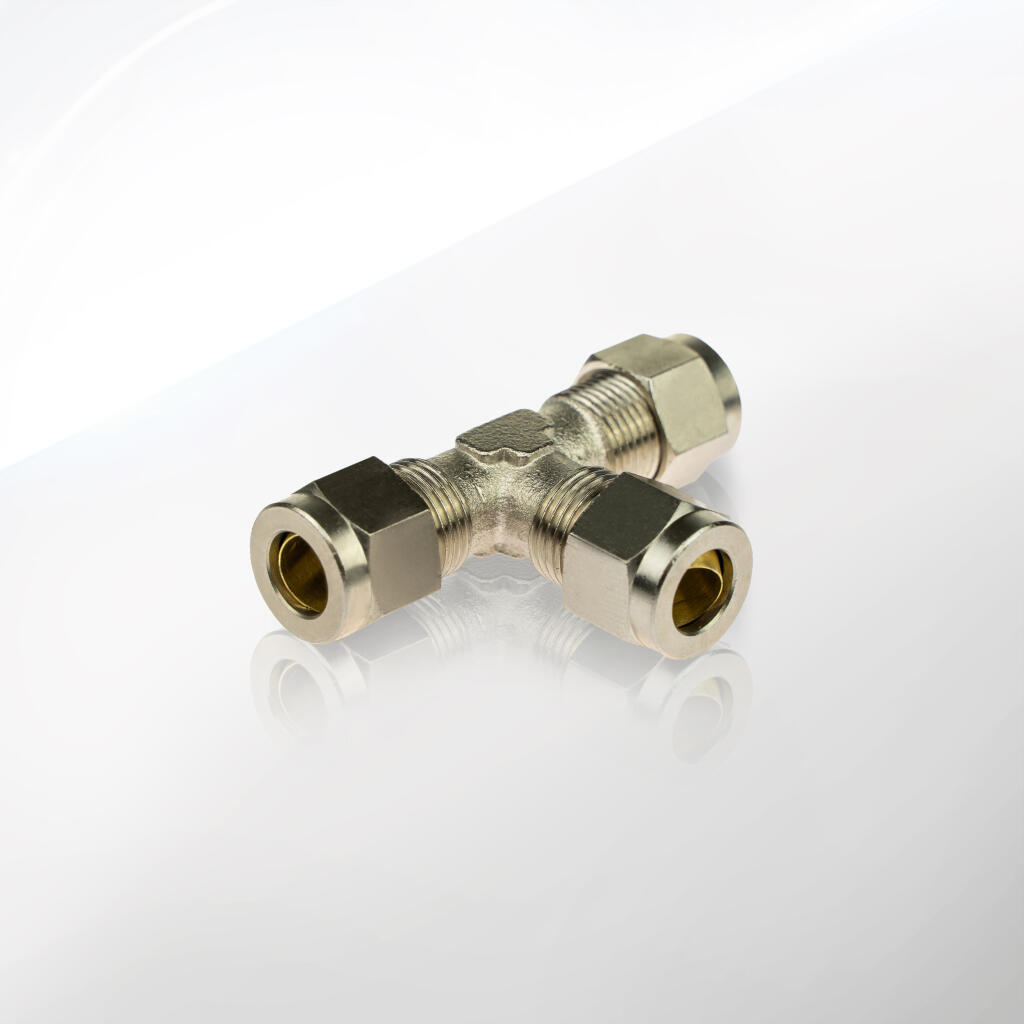 Trójnik skręcany rozgałęzia linię z rury miedzianej pod kątem 90°. Zapewnia szczelne metaliczne połączenie bez lutowania. Umożliwia szybkie podłączanie gałęzi serwisowych, czujników, zaworów. Sprawdza się w instalacjach sprężonego powietrza, wody procesowej, glikolu, olejów i gazów obojętnych.
