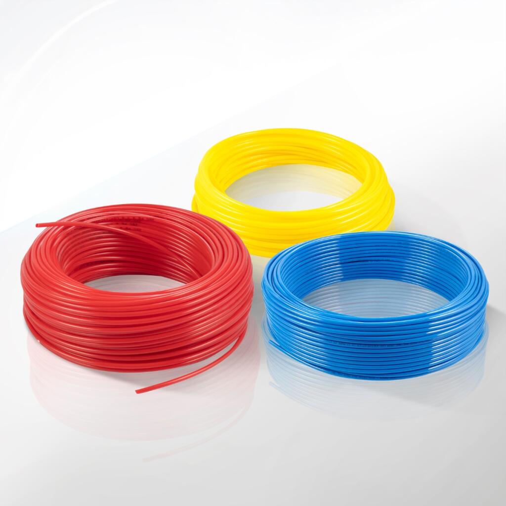 Przewód 10 × 8 mm (średnica zewnętrzna 10 mm, wewnętrzna 8 mm, ścianka 1 mm) dostępny jest w kolorze niebieskim, przezroczystym i czerwonym. Maksymalne ciśnienie robocze waha się od 7 do 8 barów, minimalny promień gięcia wynosi 35 mm, masa 32 g/m, przepływ 1240 Nl/min. Moduł sprężystości wynosi 65 MPa, a w testach 99,4% przewodów osiągnęło normy wytrzymałościowe.