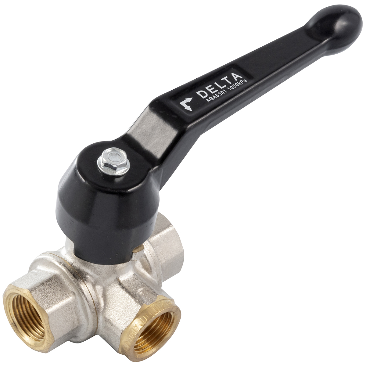 Zawór kulowy trójdrożny typu T, R3/4 GW, mosiądz niklowany
