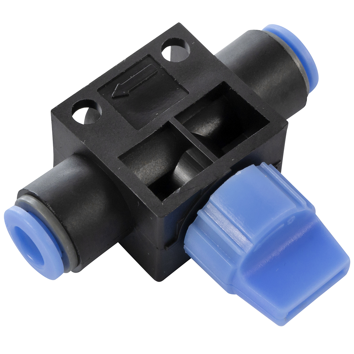 Zawór odcinający wtykowy z odpowietrzeniem przelotowy do przewodu fi 6 mm, tworzywo sztuczne