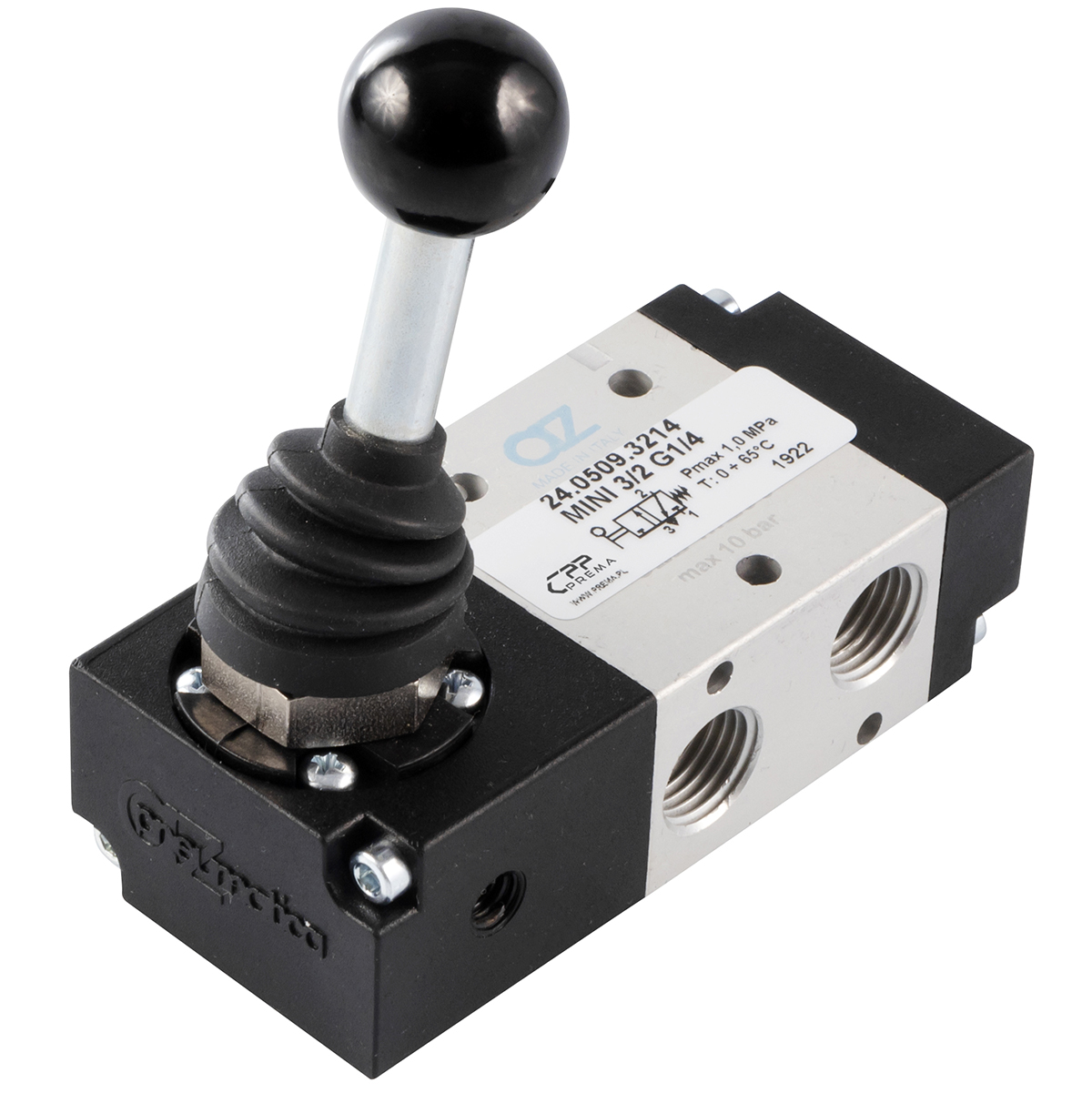 Zawór z dźwignią TM 3/2 G1/4 NC monostabilny z powrotem sprężyną.