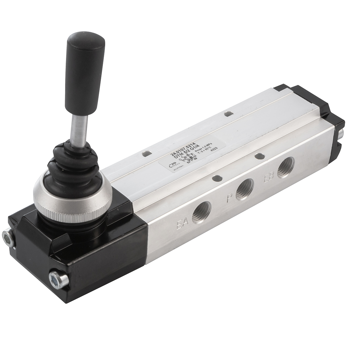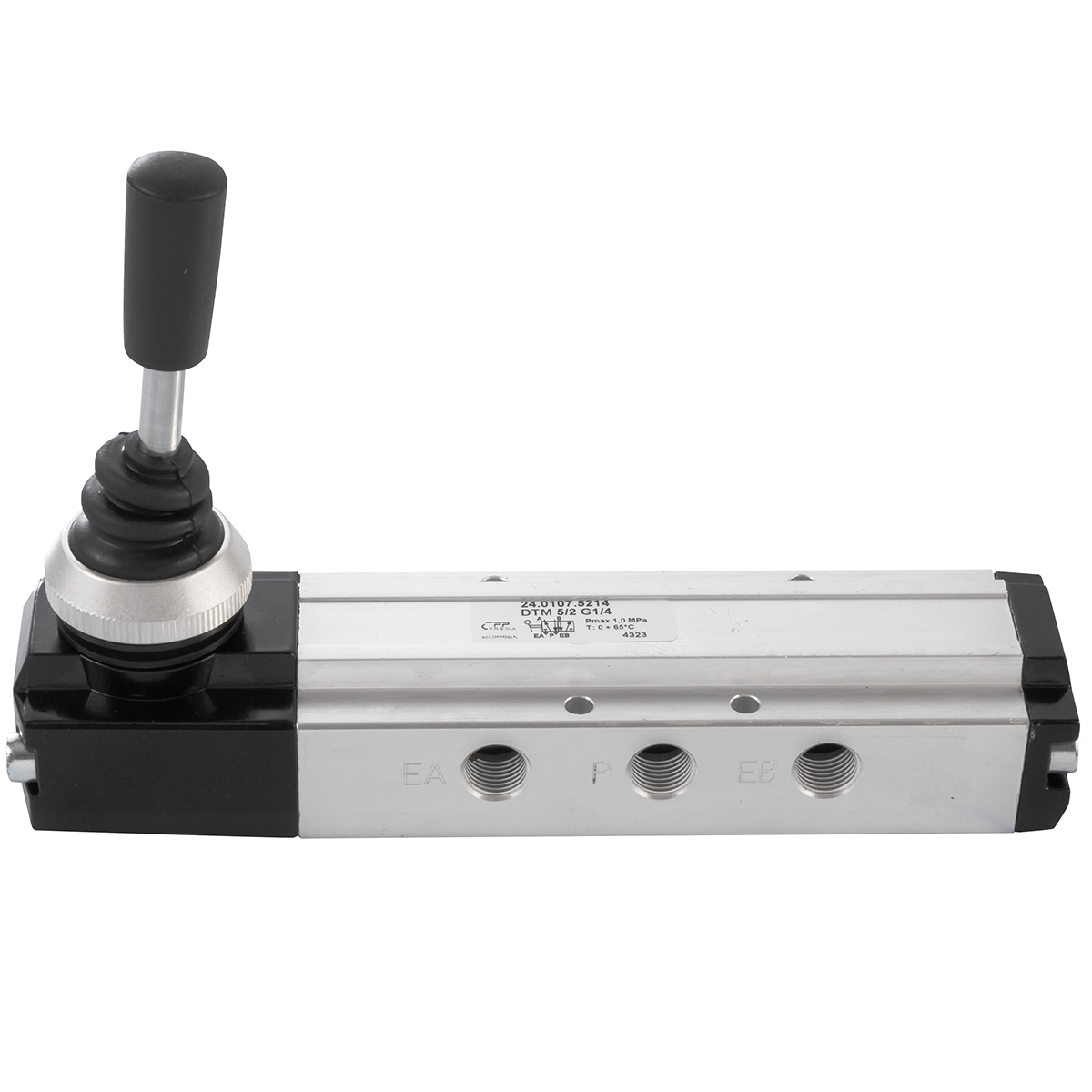 O: Oferta obejmuje zawory rozdzielające ręczne DTM 5/2 w wariantach z przyłączami G1/4, G1/8, G1/2-3/4, G1/4-3/8 oraz G1/8-1/4. Dostępne są modele z dźwignią dla wersji bistabilnej oraz modele z powrotem sprężynowym. Są dostępne urządzenia zasilane przewodowo oraz płytowo.