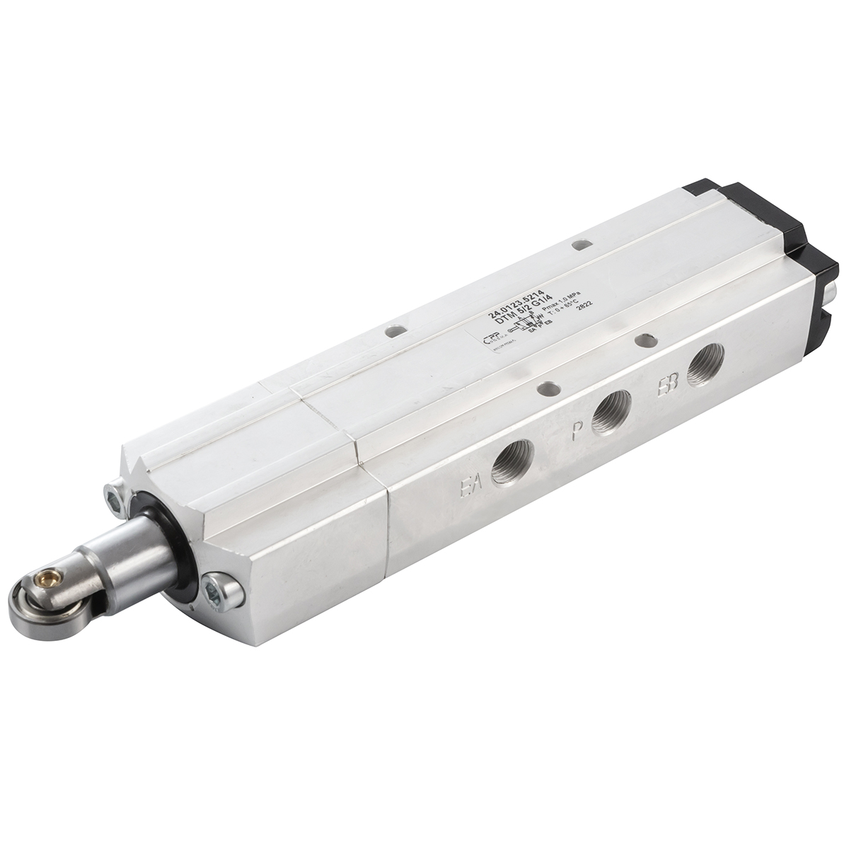 NC (normalnie zamknięty): W stanie spoczynkowym zawór nie przepuszcza powietrza; przepływ jest inicjowany poprzez nacisk rolki.