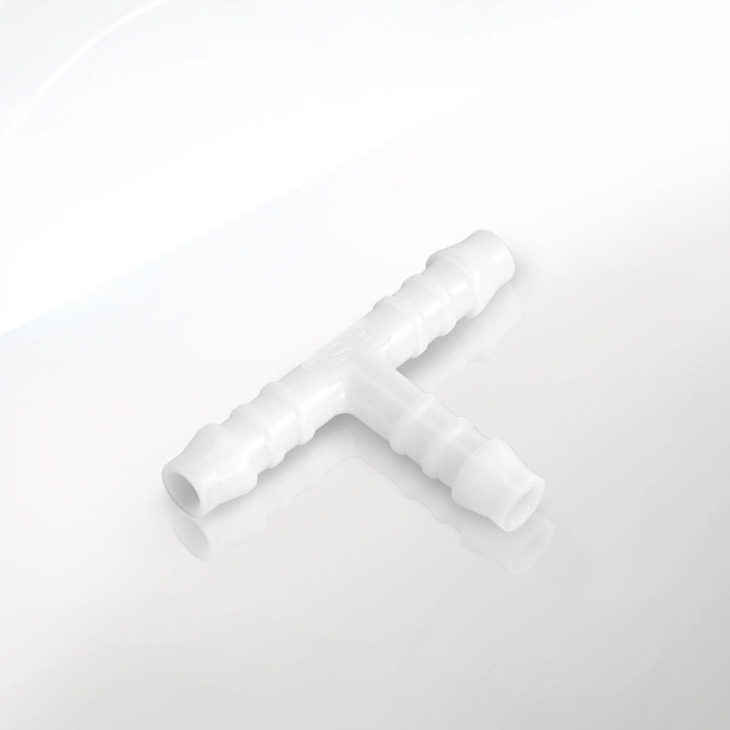 Czwórniki pozwalają na równoczesne rozdzielenie lub scalanie czterech odcinków przewodów. Najczęściej stosuje się je w systemach, w których występuje potrzeba rozgałęzienia przepływu medium na kilka kierunków. Ich budowa umożliwia łatwe wpinanie węży PVC oraz pewne trzymanie dzięki właściwościom zaciskowym tworzywa POM.Trójniki redukcyjne typu T