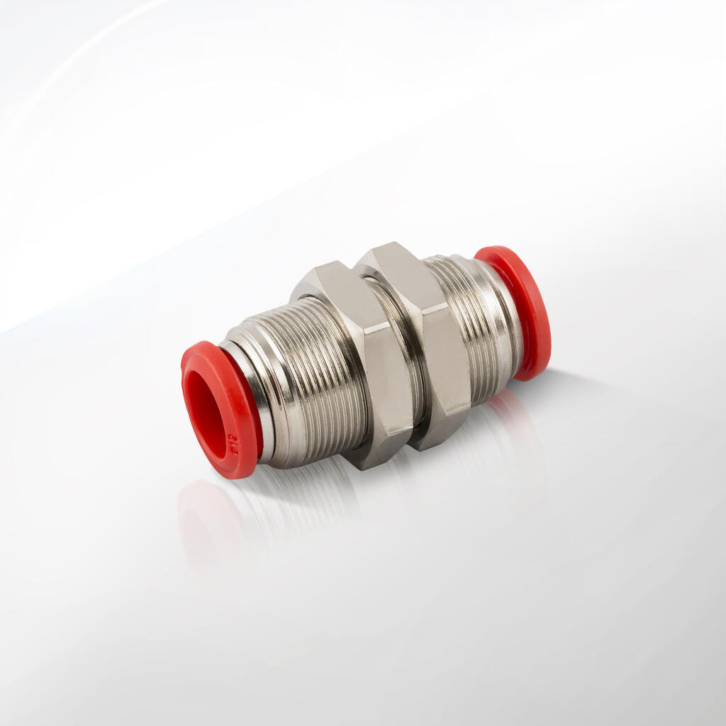 Wszystkie złączki wtykowe grodziowe z serii 50000 opierają się na zasadzie szybkiego montażu przewodu – wystarczy wcisnąć koniec węża w gniazdo wtykowe, aby został automatycznie zablokowany i uszczelniony. Rozwiązanie to nie wymaga użycia narzędzi (poza ewentualnym kluczem do dokręcenia korpusu w przegrodzie) i pozwala na szybką reorganizację instalacji. Aby odłączyć przewód, należy nacisnąć pierścień zwalniający i wyciągnąć wąż. Prosta i trwała konstrukcja zapewnia wielokrotne użytkowanie bez utraty szczelności.