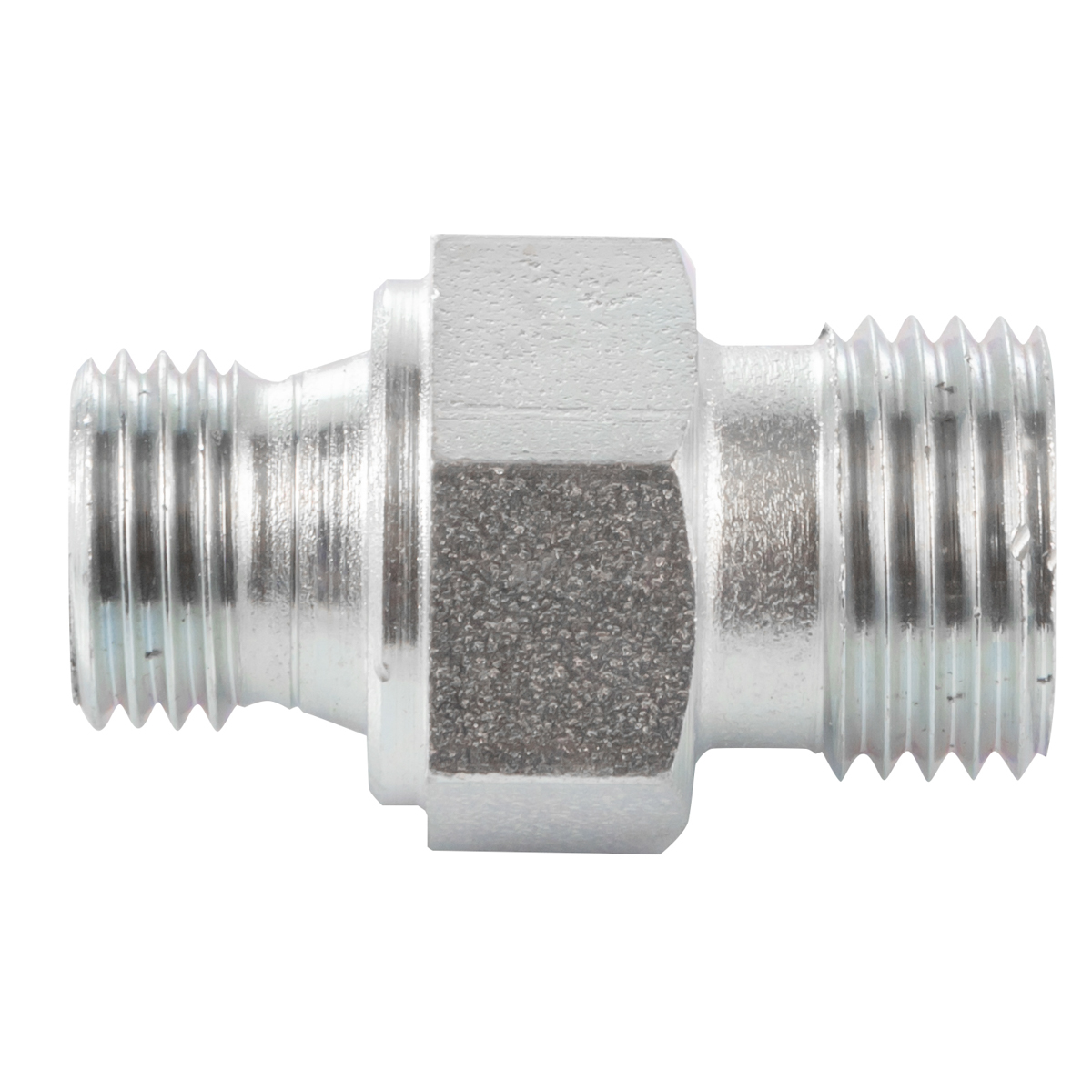 Nypel redukcyjny to złączka łącząca gwint równoległy BSPP z gwintem metrycznym w jednym elemencie. Umożliwia przejście między systemem calowym a metrycznym bez dodatkowych adapterów. Seria 60.0103 obejmuje cztery kombinacje gwintów, wszystkie wykonane ze stali węglowej z powłoką cynkową.