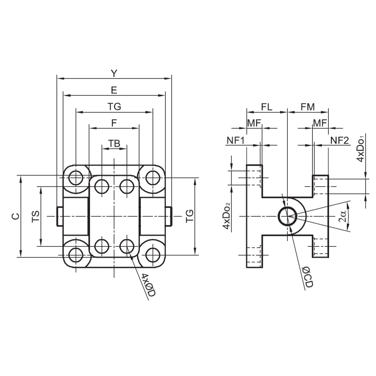 10.004J.01.A - Ucho proste kompletne do siłownika pneumatycznego D80 CNOMO, aluminium