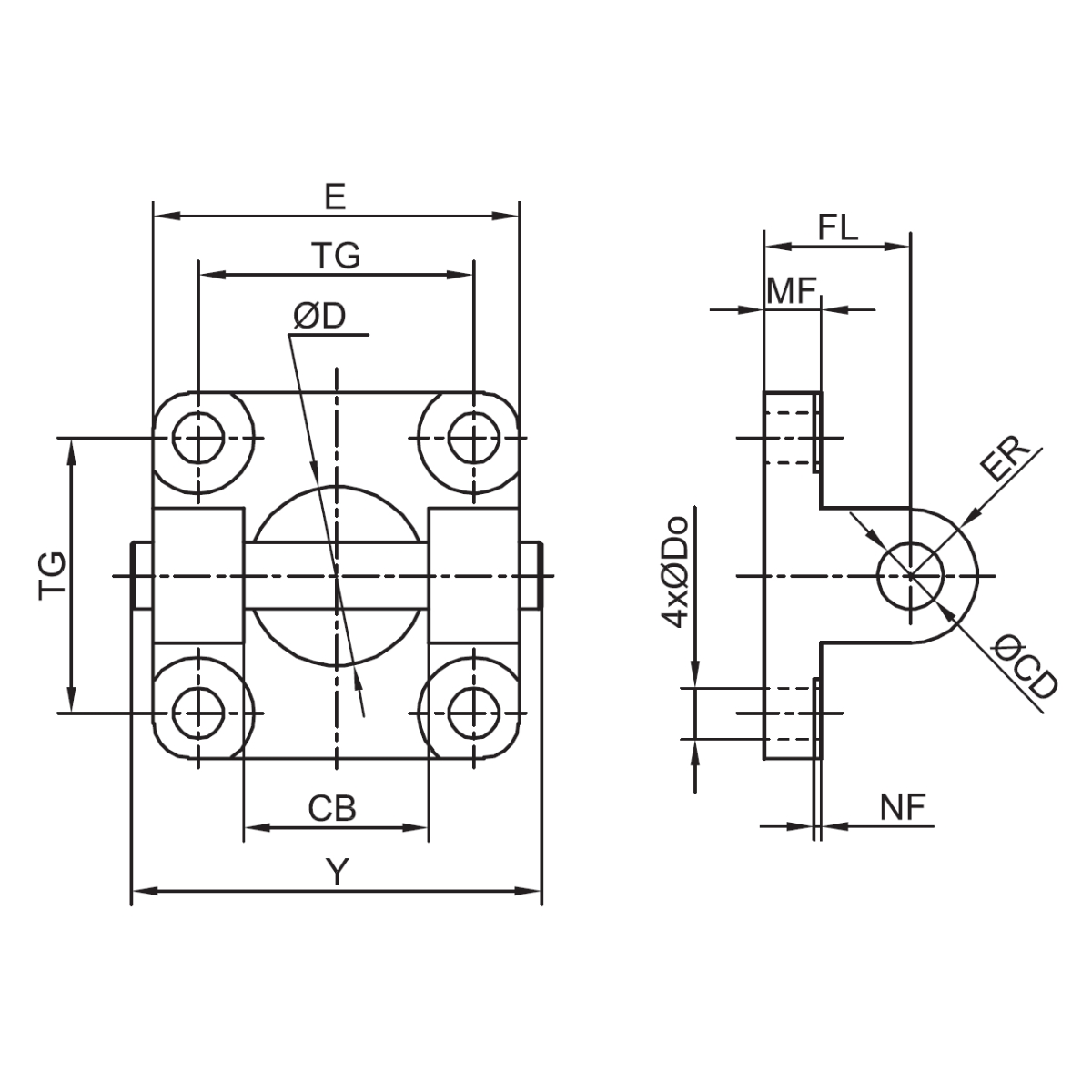 10.004L.02. - Widełki ze sworzniem do siłowników pneumatycznych D125 CNOMO, żeliwo