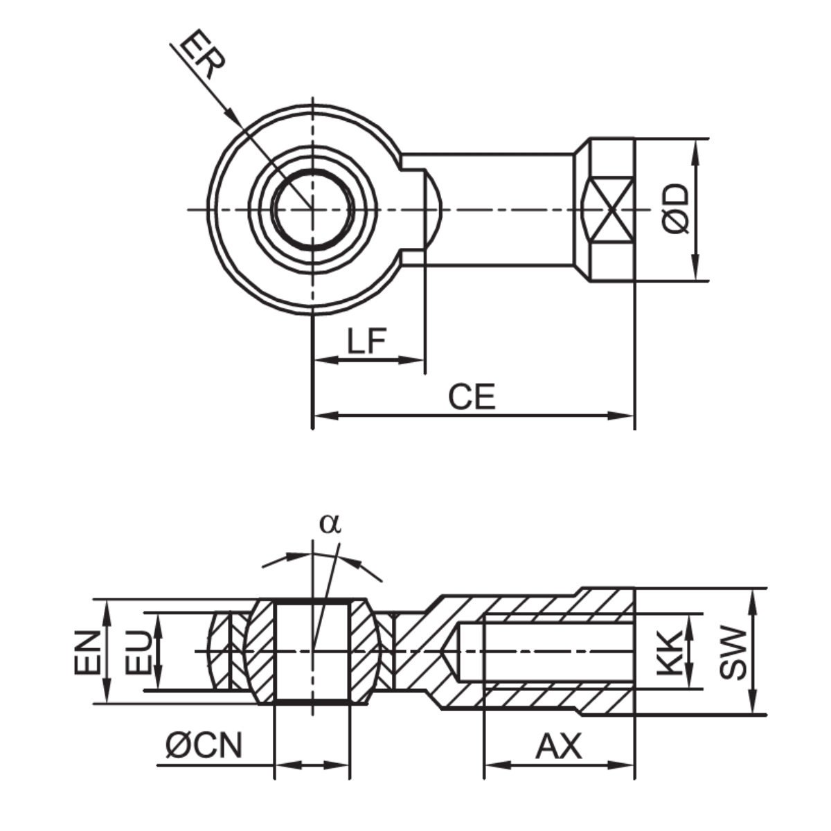 10.014H.06. - Końcówka prosta z przegubem kulowym M16x1,5 do siłownika D50/D63 (ISO 15552), D40/D50 (CNOMO)