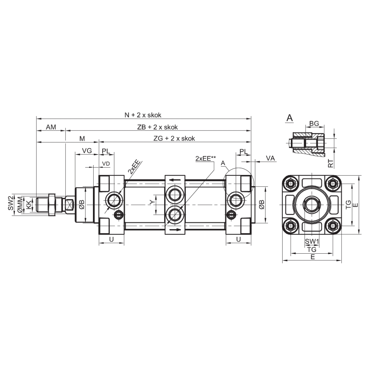 10.015J.0080A - Siłownik pneumatyczny ISO15552/6431 D80x80 TANDEM, bez magnesu