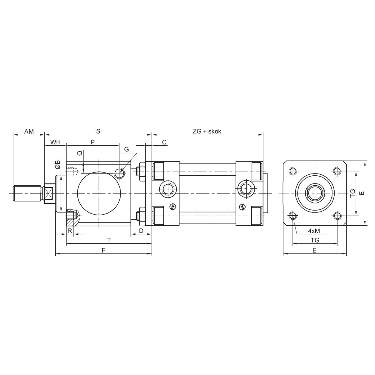 - [016PB] Dwustronnego działania z tuleją kształtową z jednostronnym tłoczyskiem