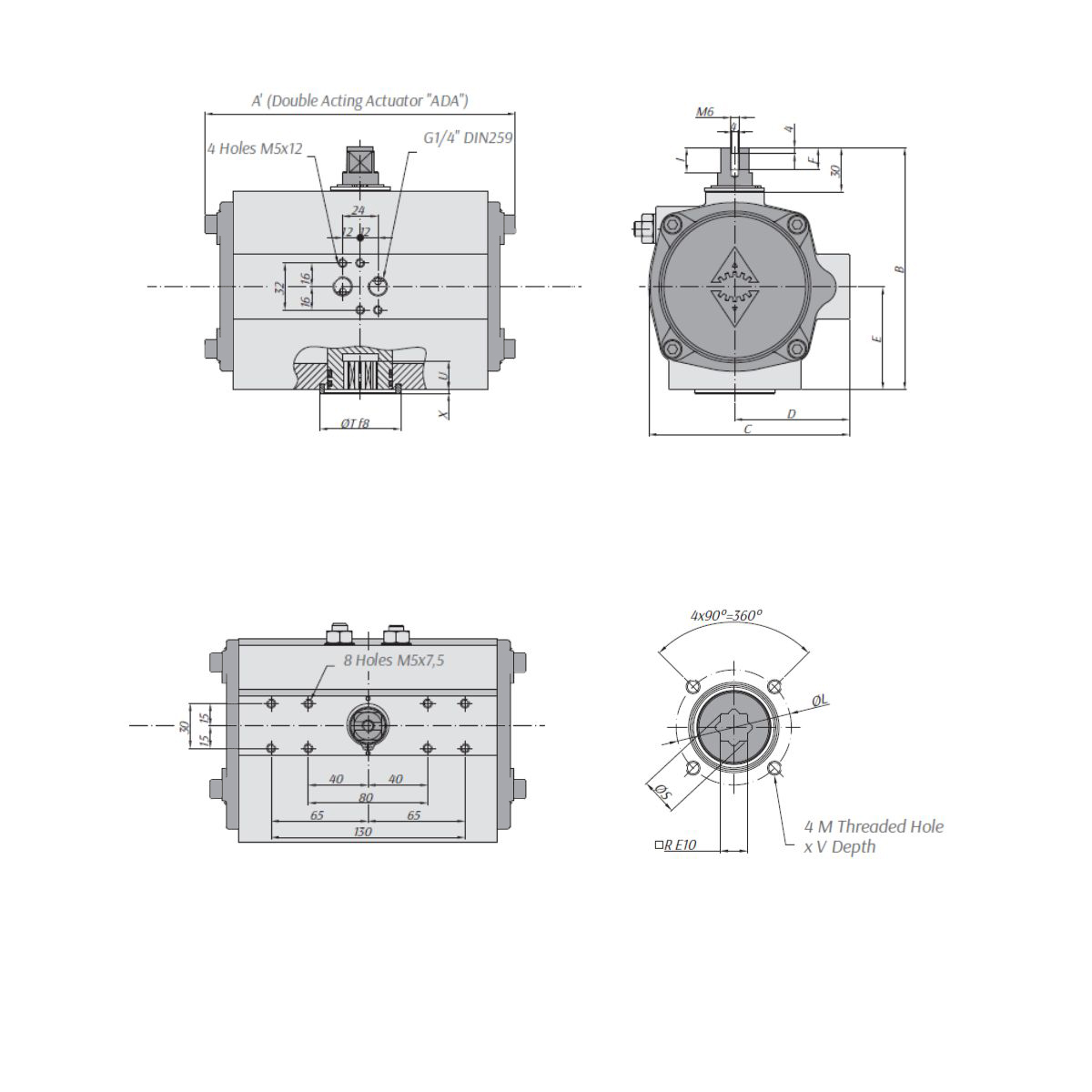 14.ADA1750.F14.R36 - Siłownik obrotowy dwustronnego działania ADA1750, ISO 5211 F14, kwadrat 36 mm