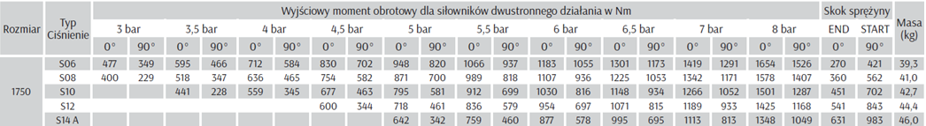 14.ASR1750.F14.R36 - Siłownik obrotowy jednostronnego działania ASR1750, ISO 5211 F14, kwadrat 36 mm