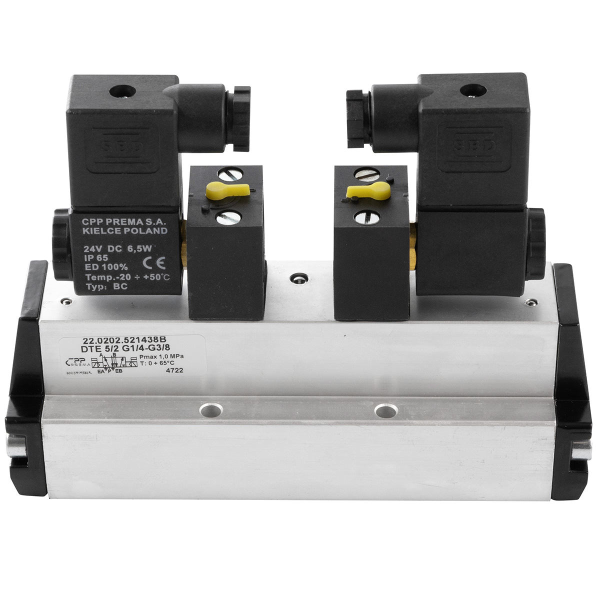 22.0212.531814J - Elektrozawór DTE 5/3 G1/8-1/4 CO centralnie otwarty cewki 230V AC 6,5VA (zasilany płytowo)