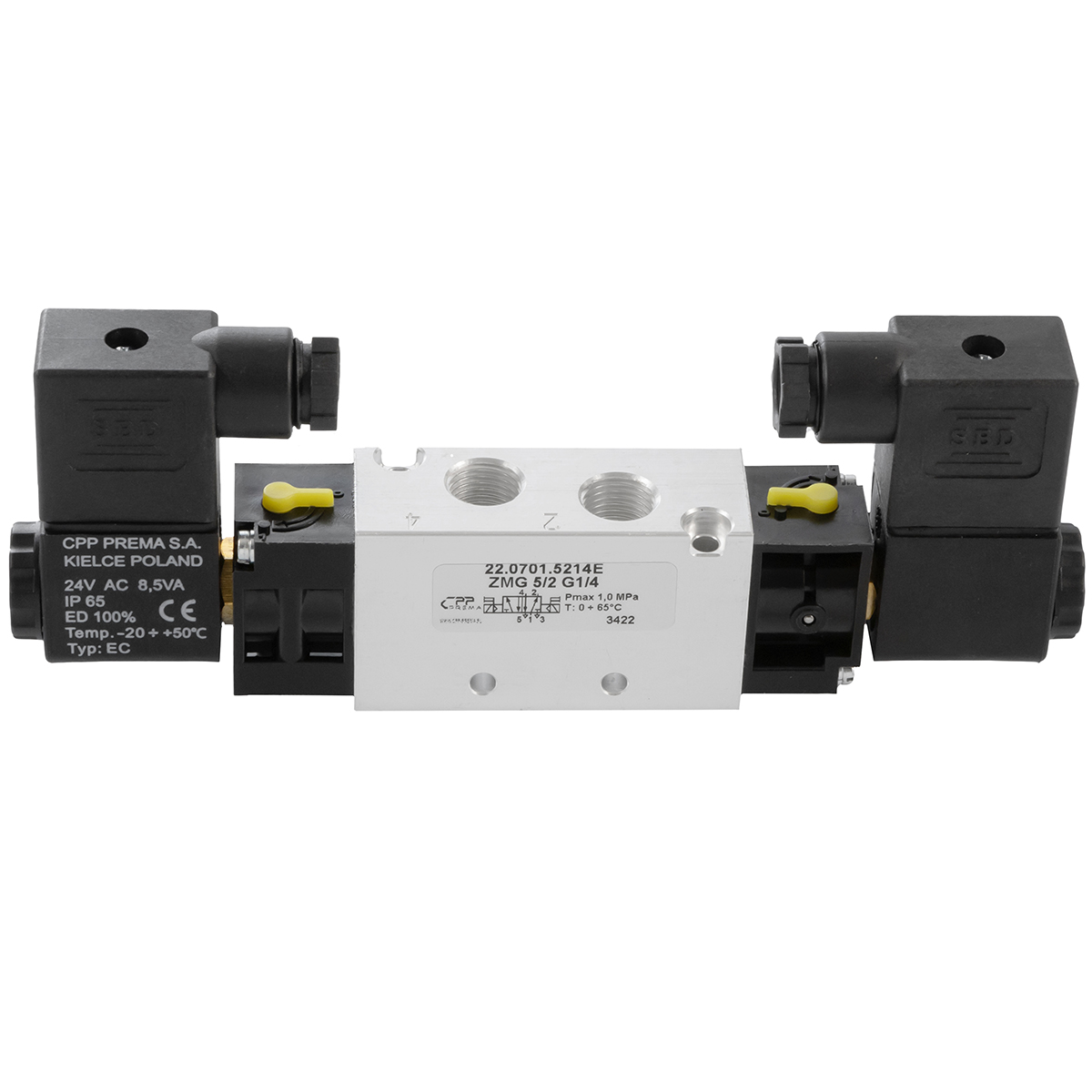 22.0701.5214B - Elektrozawór pneumatyczny rozdzielający ZMG 5/2 G1/4 bistabilny cewki 24V DC 6,5W