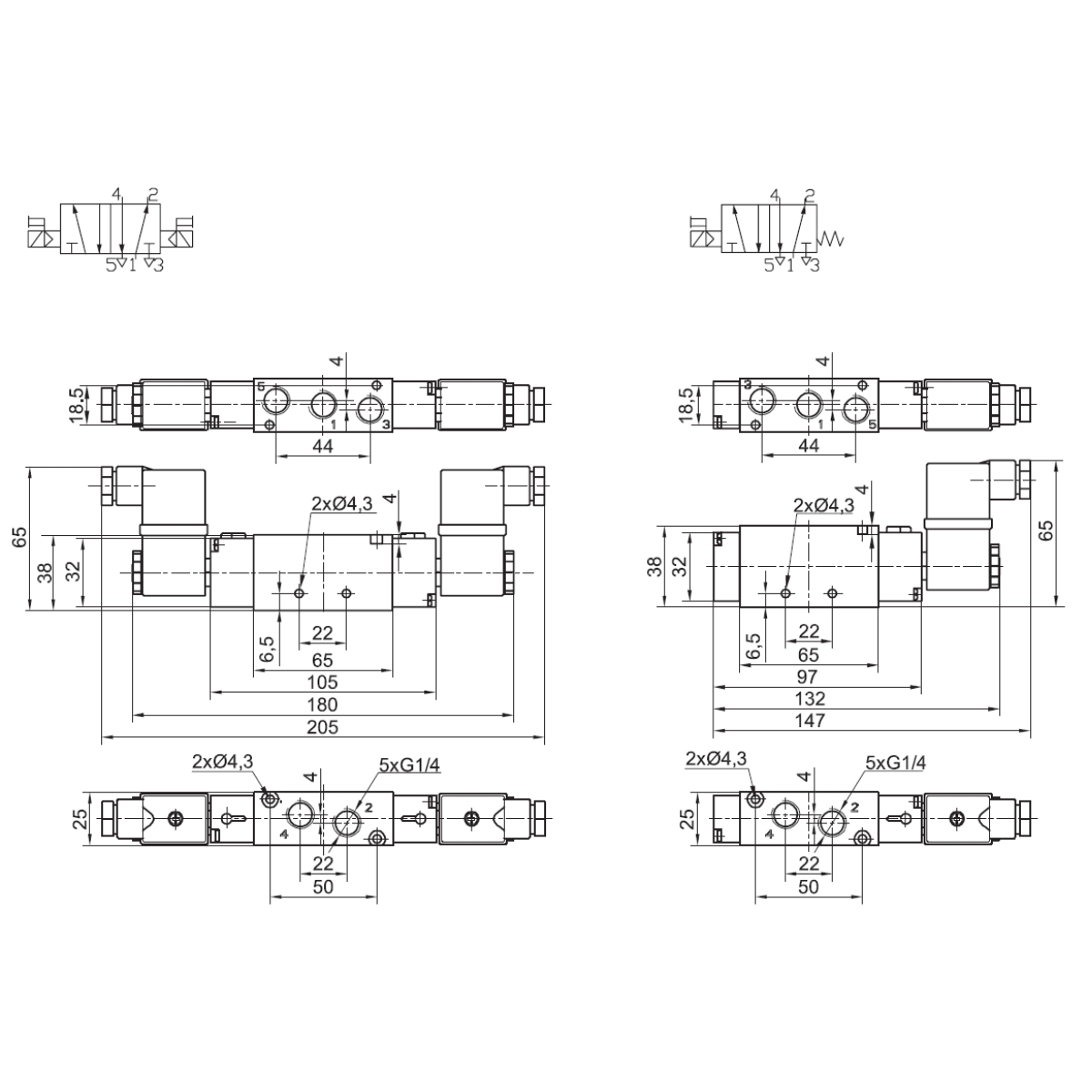 - Elektrozawory 5/2 z dwoma cewkami, bistabilne