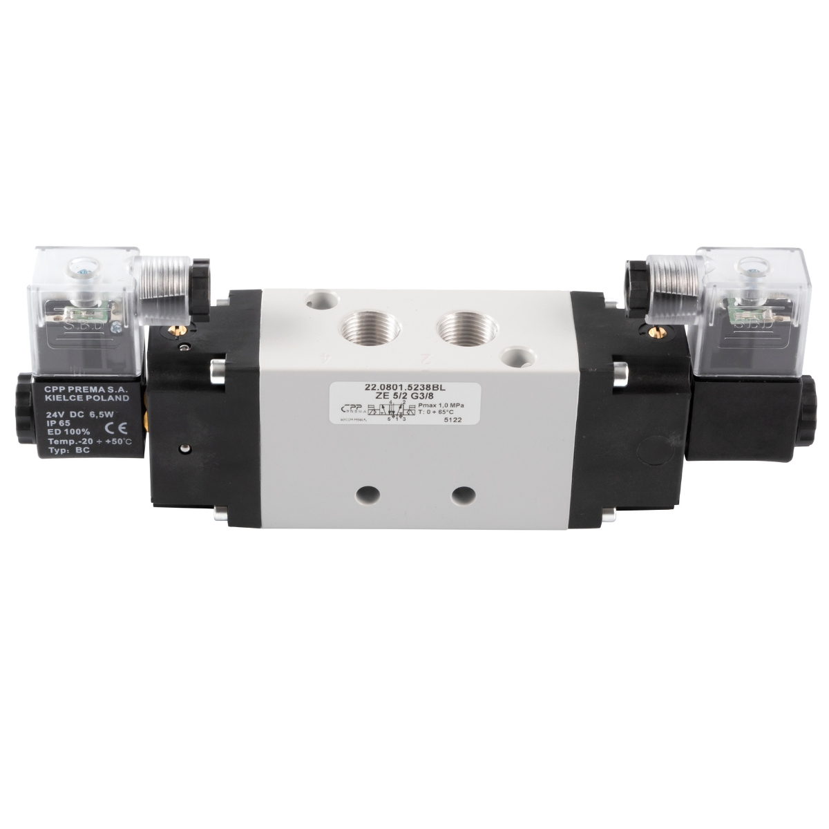 22.0801.5238JL - Elektrozawór pneumatyczny rozdzielający ZE 5/2 G3/8 bistabilny cewki 230V AC 6,5VA LED