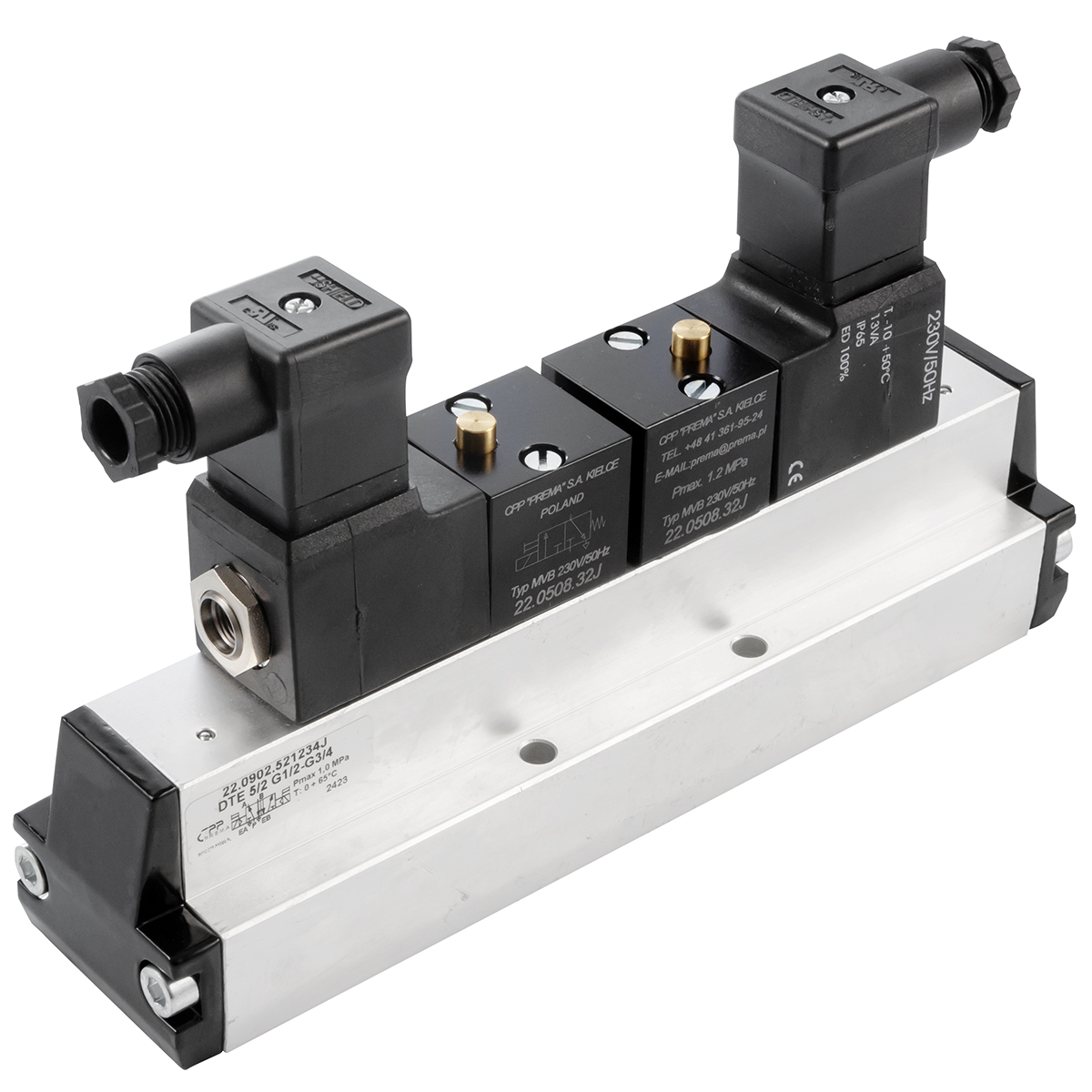 22.0902.521234B - Elektrozawór pneumatyczny DTE 5/2 G1/2-3/4 bistabilny cewki 24V DC 6,5W (zasilany płytowo)