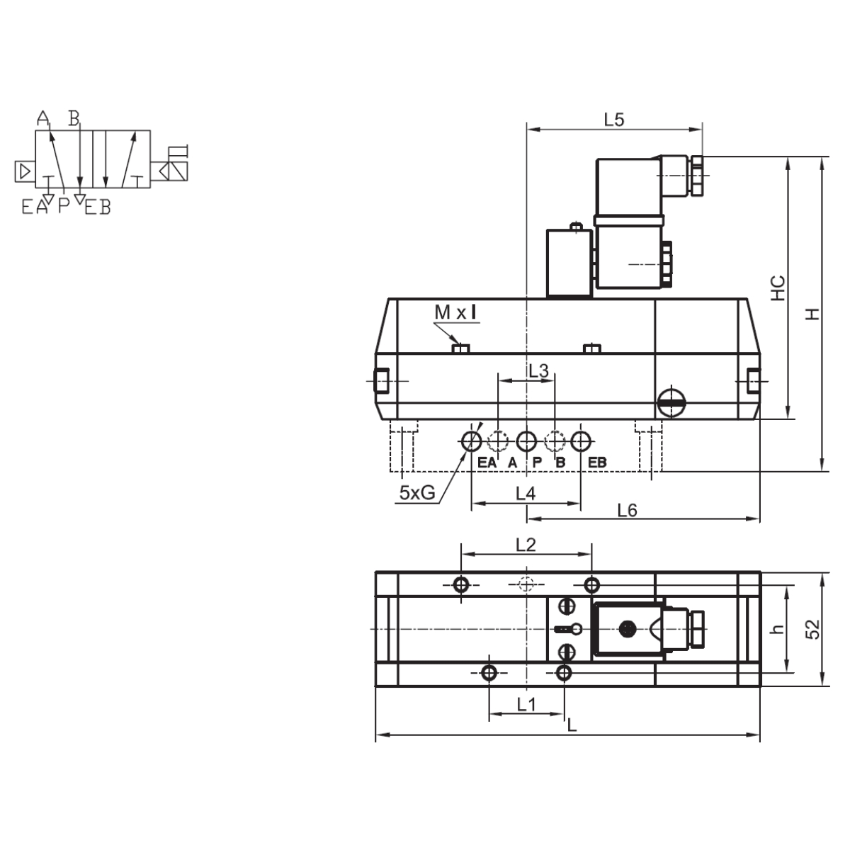 - Elektrozawory 5/2 z dwoma cewkami, bistabilne