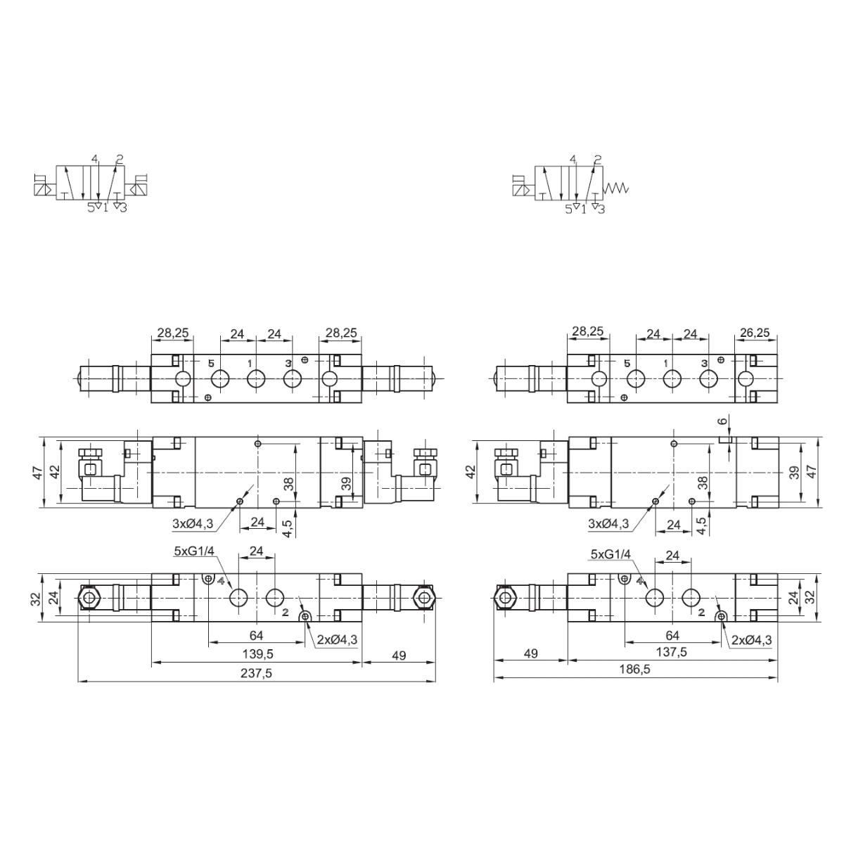 22.1701.5214B - Elektrozawór pneumatyczny rozdzielający ZEM 5/2 G1/4 bistabilny cewki 24V DC 2,5W