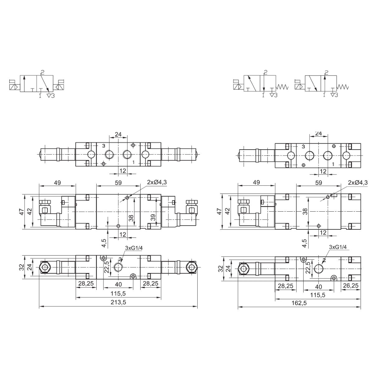 - Elektrozawory 3/2 NO, z jedną cewką monostabilne