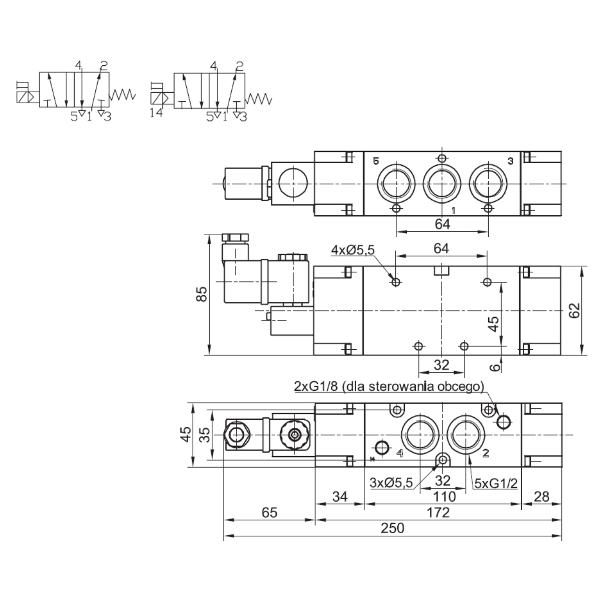 - Elektrozawory 5/2 z jedną cewką, monostabilne