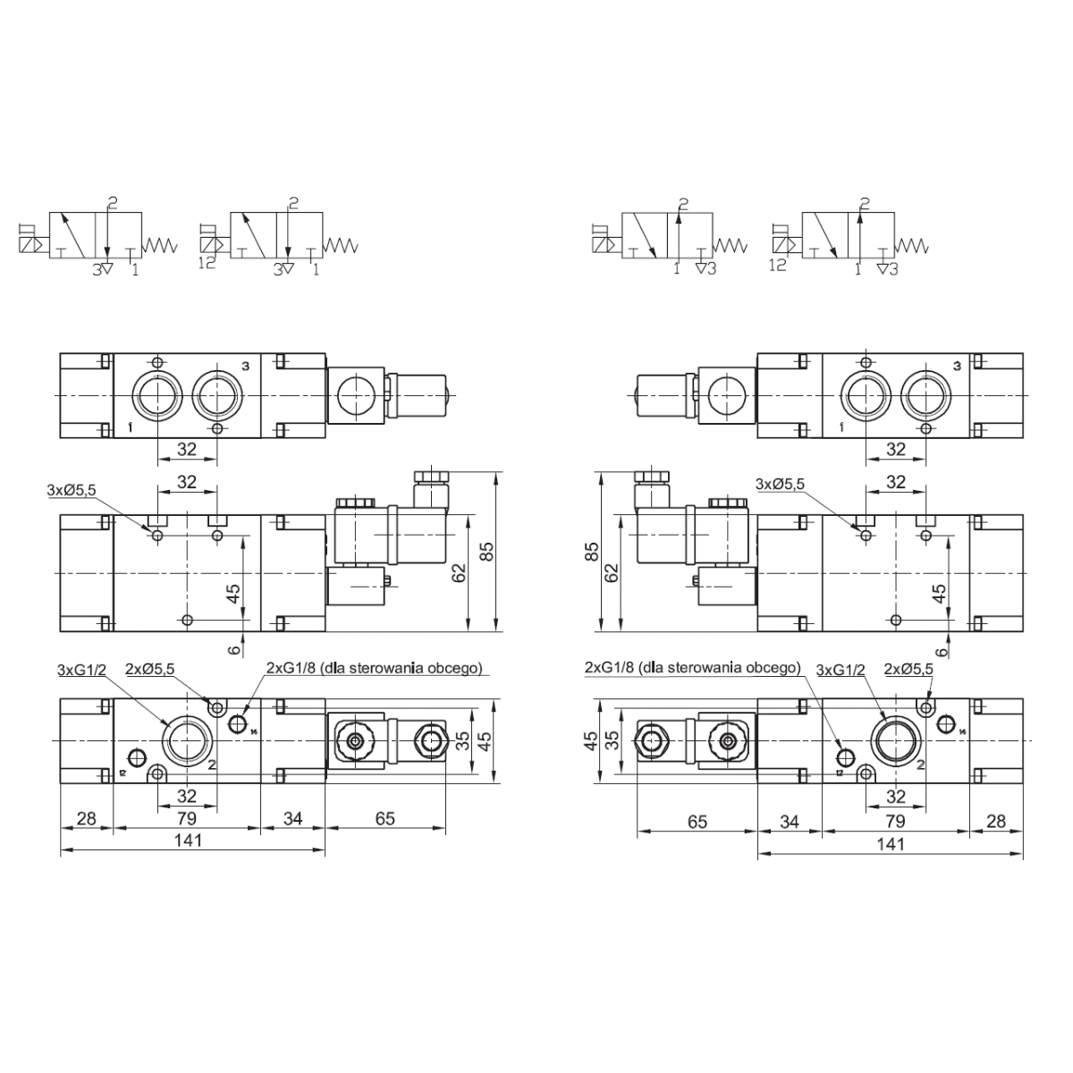 - Elektrozawory 3/2 z dodatkowym sygnałem sterującym