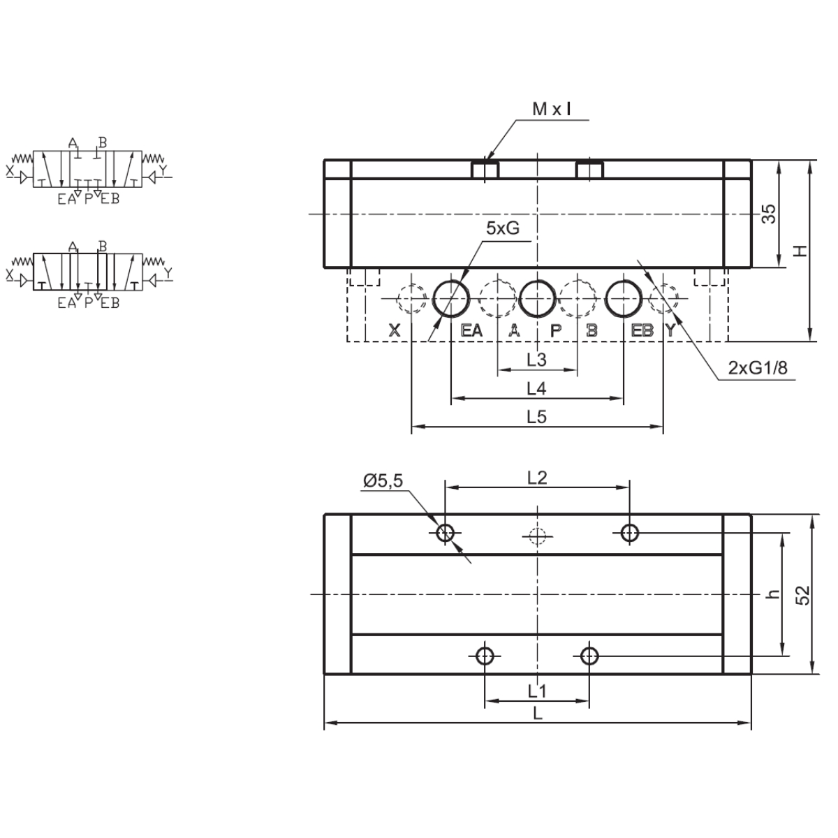 - Zawory sterowane pneumatycznie 5/3, centralnie zamknięte [ CC ]