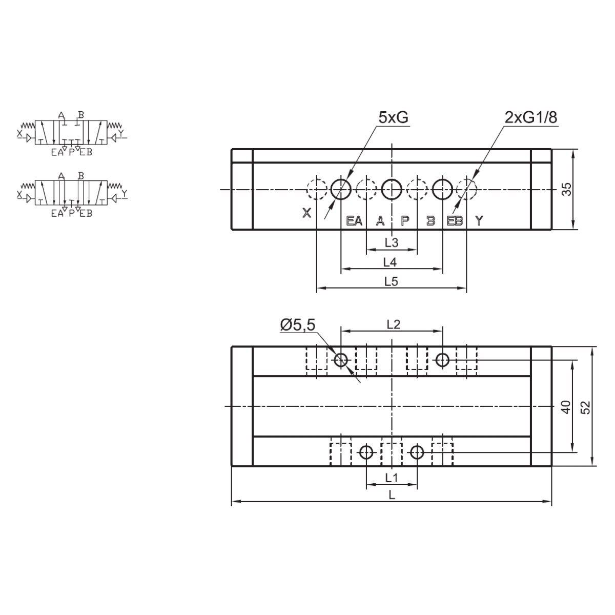 - Zawory sterowane pneumatycznie 5/3, centralnie otwarte [ CO ]