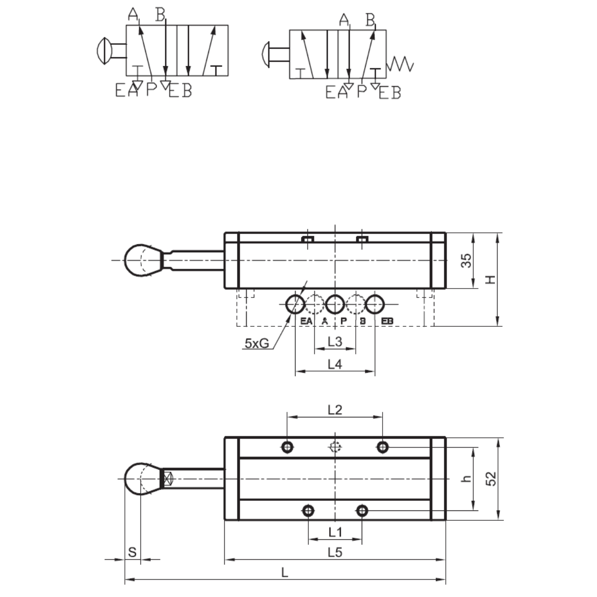 24.0102.521438 - Zawór rozdzielający ręczny DTM 5/2 G1/4-3/8 bistabilny z cięgłem (zasilany płytowo)
