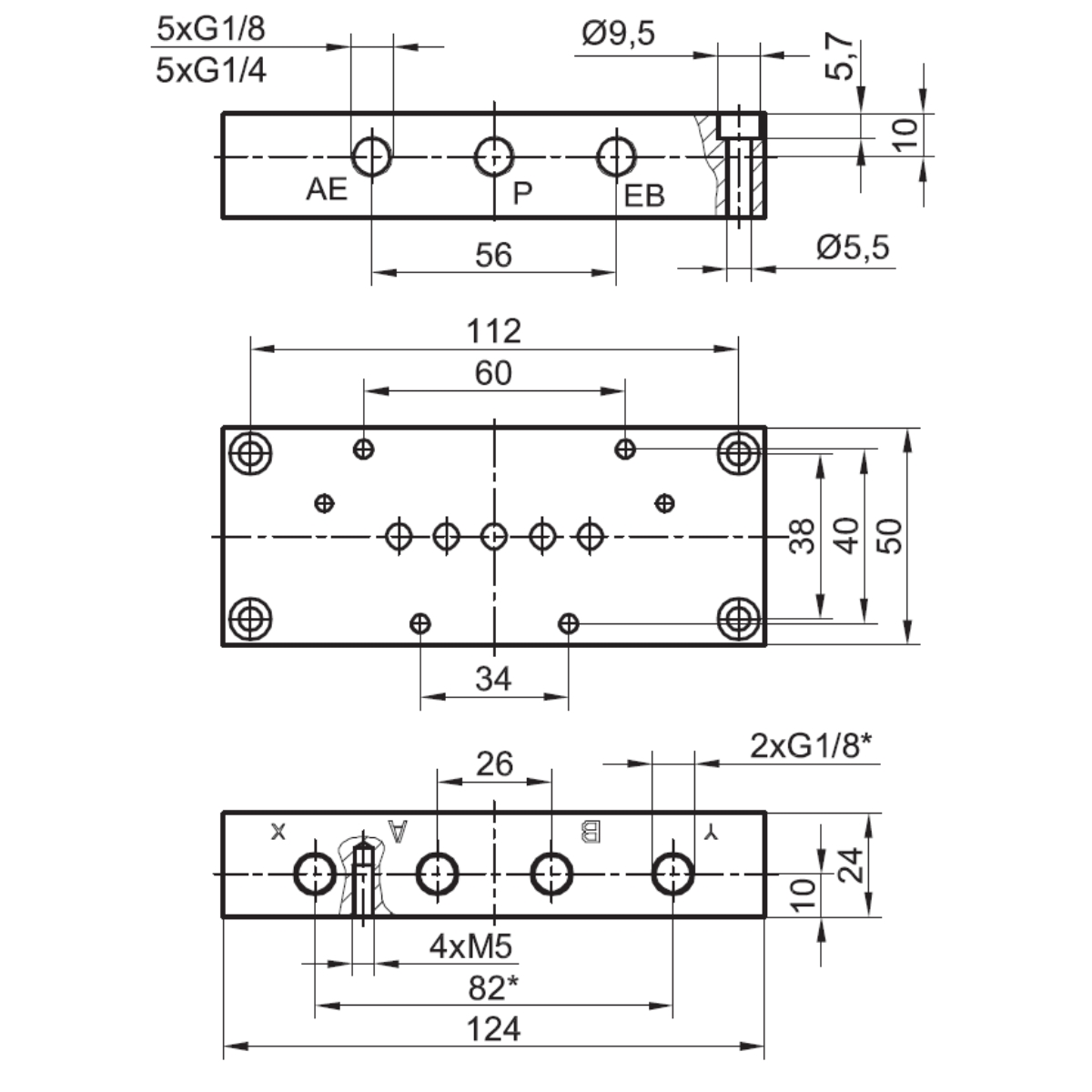 25.0102.525318 - Płyta przyłączeniowa 5-drogowa G1/8 do DTE i DTM