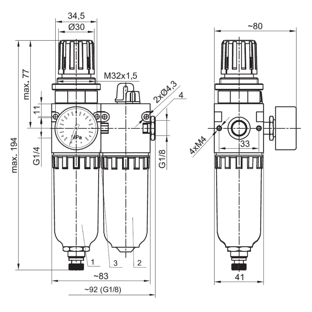 - Zespoły przygotowania sprężonego powietrza seria MINI G 1/4"