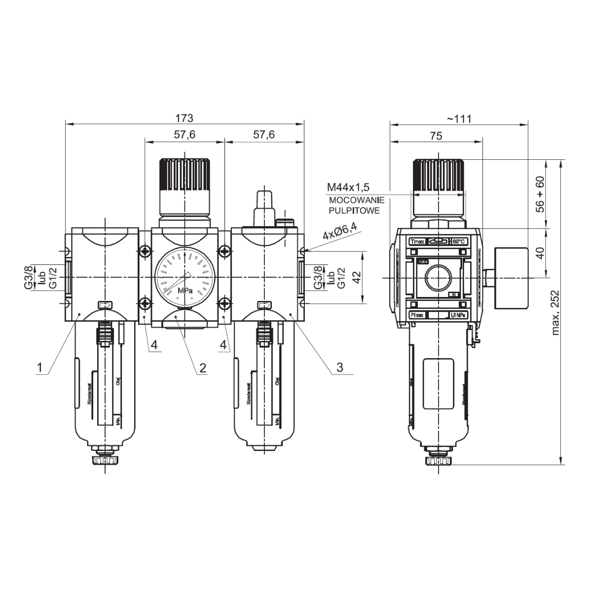 - Zespoły przygotowania sprężonego powietrza seria NOVA G3/8" - G1/2"