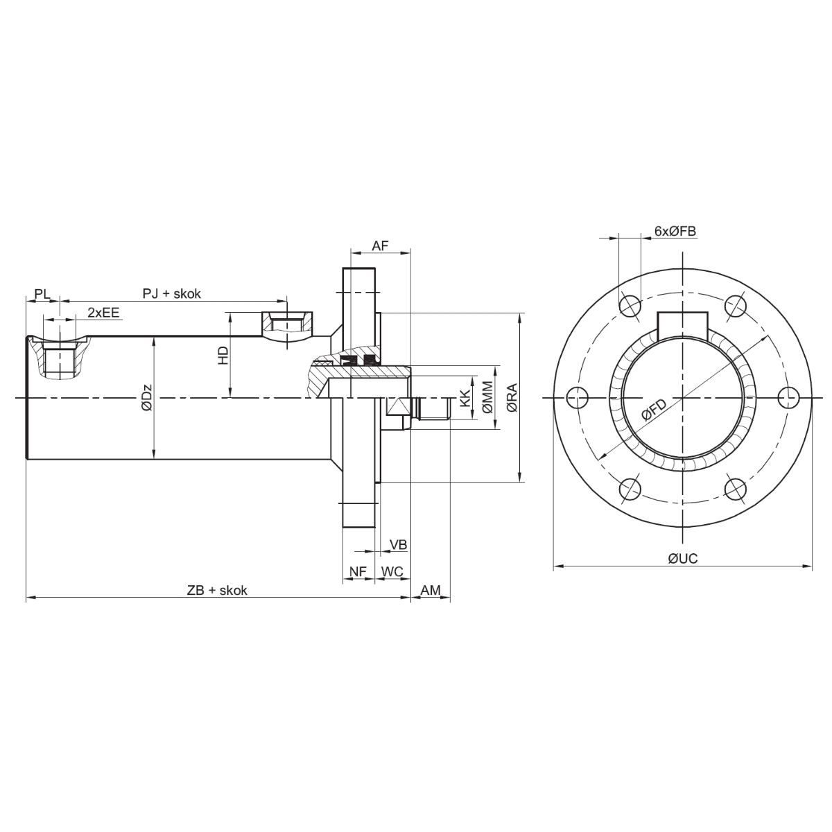 - Siłowniki hydrauliczne dwustronnego działania z kołnierzem okrągłym głowicy typu F3 UCJ3