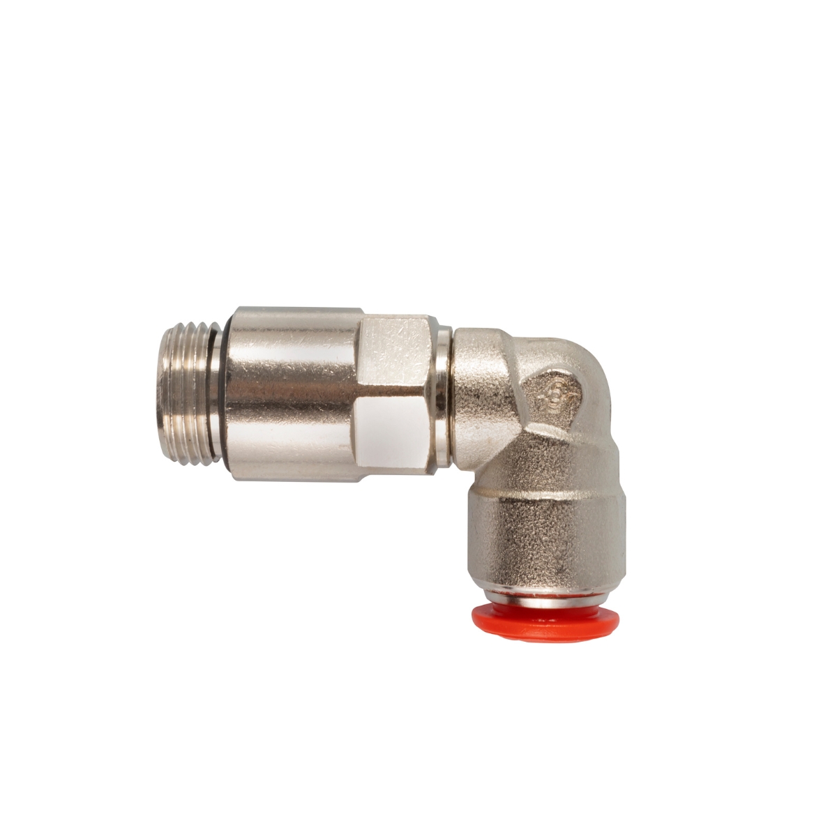 Złączka wtykowa kątowa gwint zewnętrzny G1/4 do przewodu fi 10 mm, mosiądz niklowany