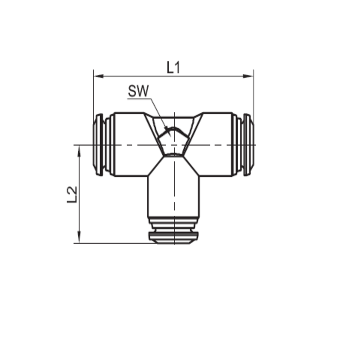 80.0050.11.06 - Trójnik wtykowy typu T do przewodu fi 6 mm, mosiądz niklowany