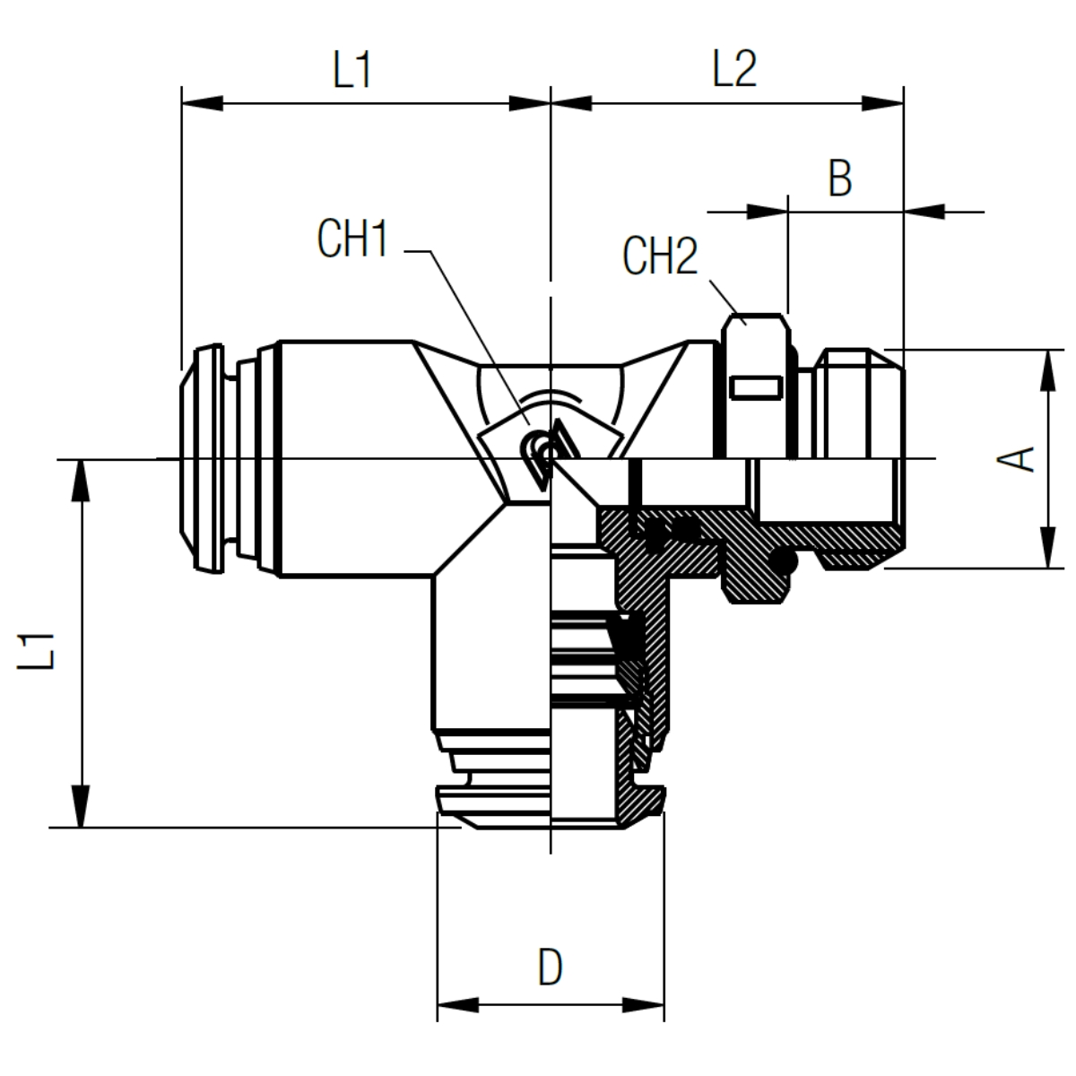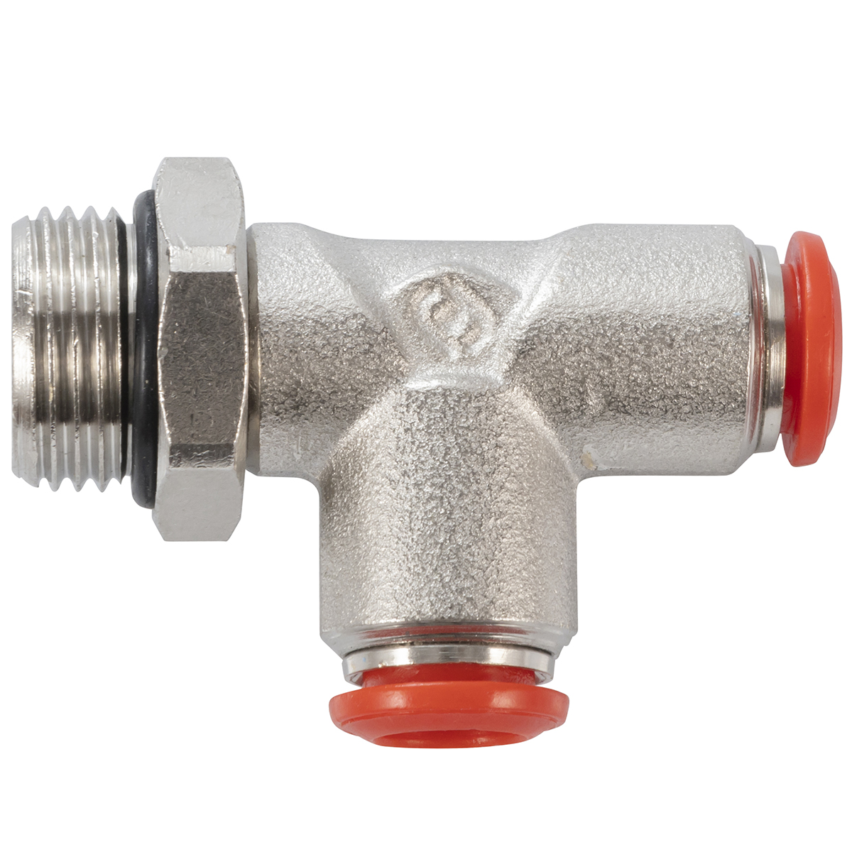 80.0050.18.1408 - Trójnik wtykowy typ F, gwint zewnętrzny G1/4 do przewodu fi 8 mm, mosiądz niklowany