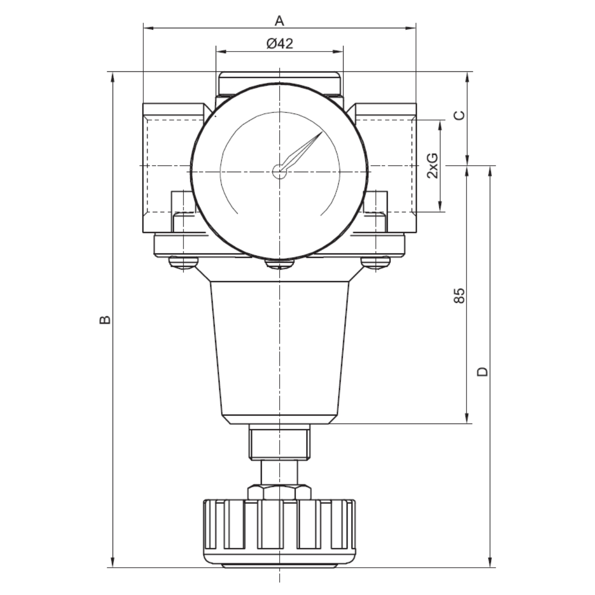 80.0101.100821 - Reduktor ciśnienia powietrza G1 GW do 3 bar, regulacja 0,5 - 3 bar