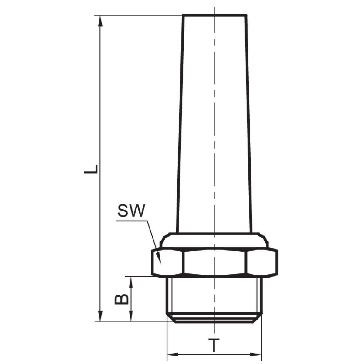- Tłumiki hałasu stożkowe długie pod klucz sześciokątny spiek brązu/ mosiądz seria 80.0174