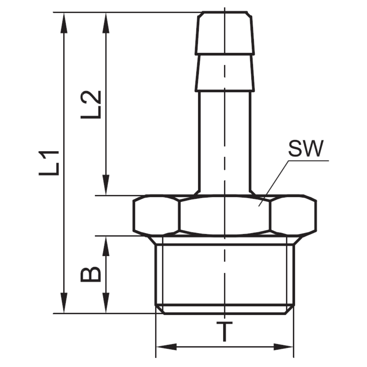 - Króćce proste z gwintem zewnętrznym i choinką seria 80.0239.Z