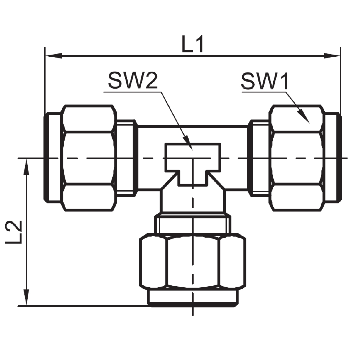 80.1024.10 - Trójnik skręcany typ T do rur miedzianych 10 mm, mosiądz /10200-A/