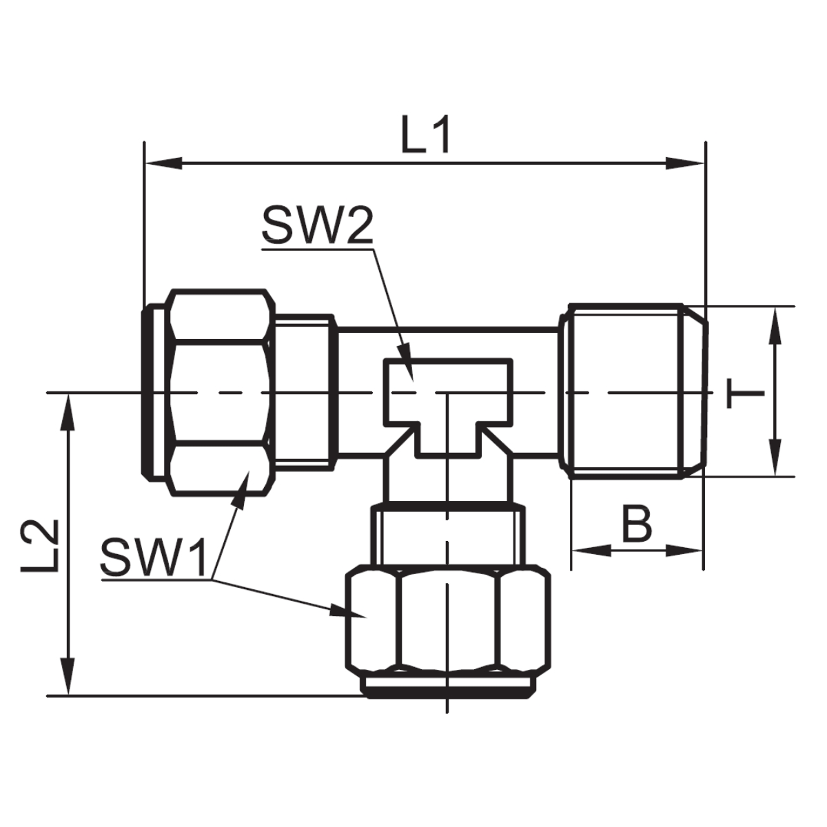 - Trójniki typu T asymetryczne z gwintem zewnętrznym seria 80.1025